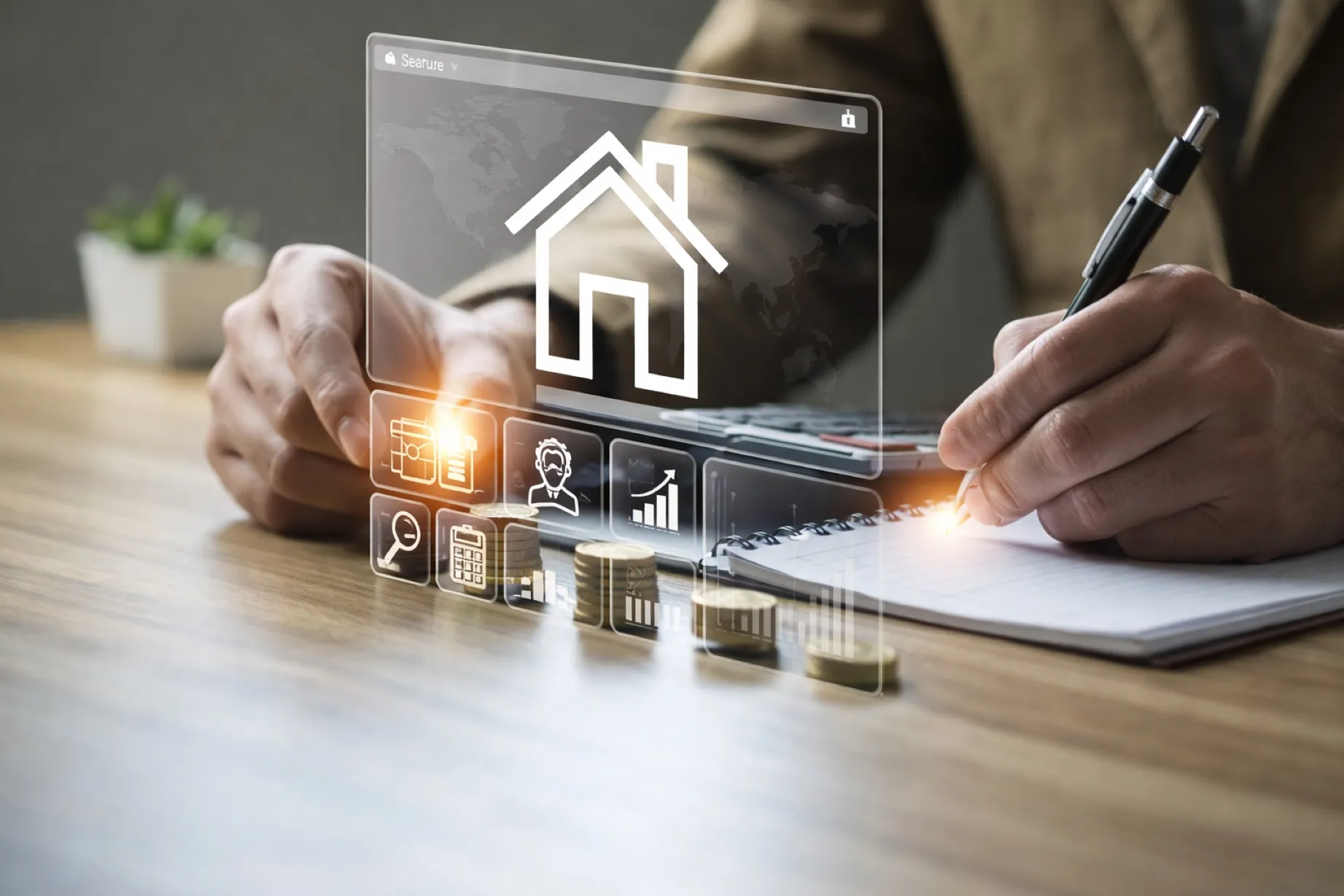 Persona contratando seguros online con navegación segura